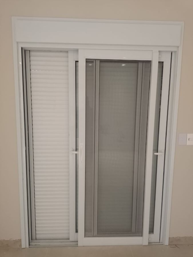 Controle total de luminosidade e privacidade, com recolhimento total no interior do perfil, garantindo estética limpa quando a porta está aberta.